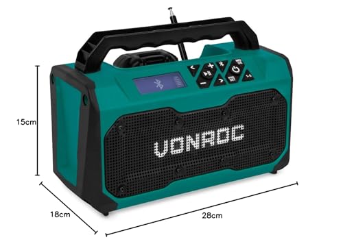 VONROC Accu bouwradio 20V – FM, bluetooth & USB – Bass-reflex poort speakers – Incl. 2.0Ah accu en snellader