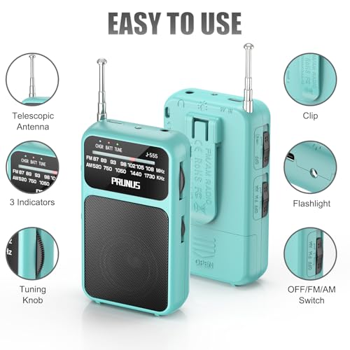 Kleine Draagbare Radio, PRUNUS J-555 Draagbare Radio met Oplaadbare 800mAh Batterij